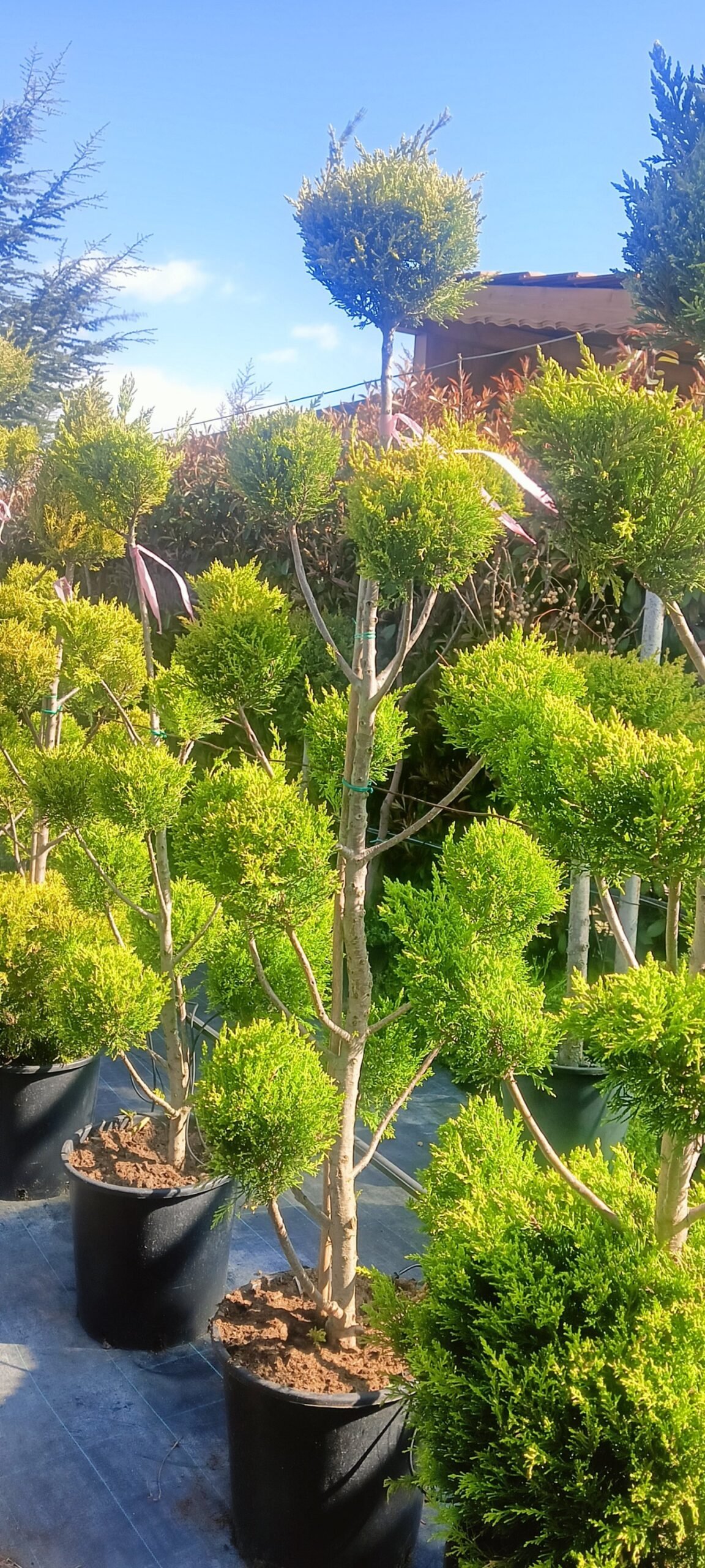 | Топиарна Форма | „“Пом Пон““ – характеризира се с редица плътно оформени, сферични до яйцевидни туфи, подредени вертикално върху изчистен ствол или клонки, създавайки „букет“ или „облачен“ ефект. |